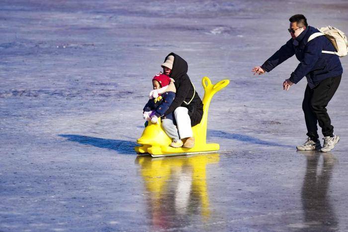 1月11日体育游戏app平台,北京奥园龙形水系冰场上,市民、旅客骑着冰车爽快滑行,尽情享受冰上舒畅时光。