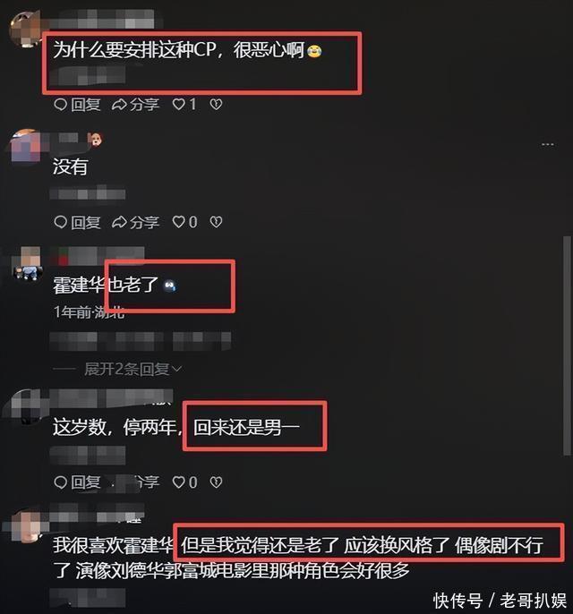 网友吐槽说念:“为什么要安排这种CP,很恶心啊。” 还有的示意,霍建华老了,该换下赛说念了,不错像刘德华学下,去拍电影啥的。