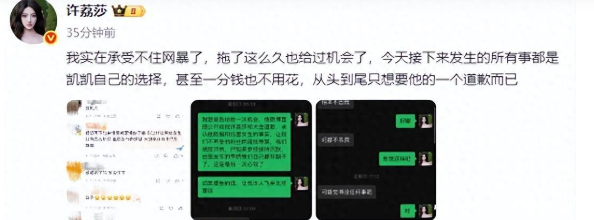 许荔莎在那处看到音讯后,立马就转发了,她这一举动,险些是给许凯火上浇油。