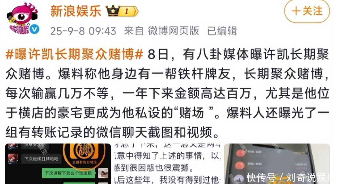 被爆出“劈叉”丑闻也就算了,紧接着,许凯又被他东谈主爆料可能参与赌博。
