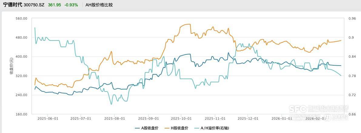 宁德期间的情况也近似。该公司2025年5月20日在港股上市,刚刚完成A+H布局,当今在港股仍属于“次新股”。2月24日,宁德期间A股下落0.93%,H股下落3.13%,成交量上A股是H股的12.5倍。